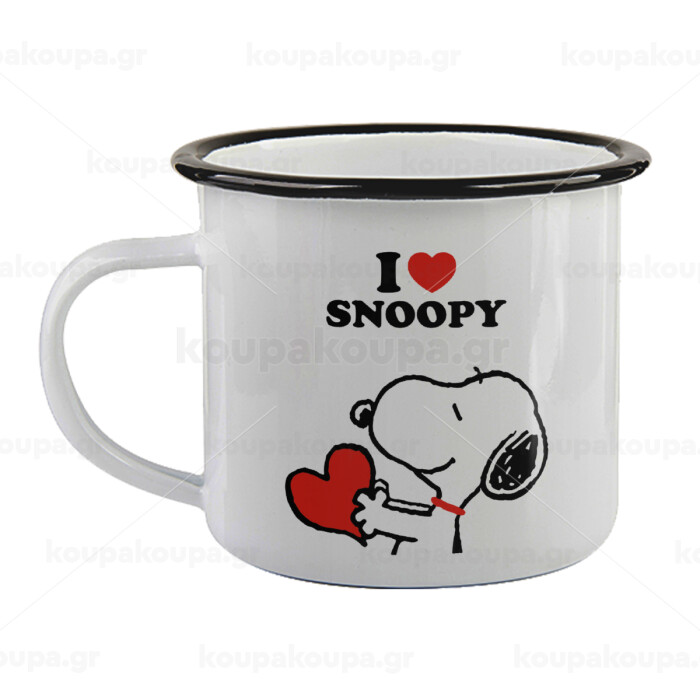 I LOVE SNOOPY, Κούπα εμαγιέ με μαύρο χείλος 360ml