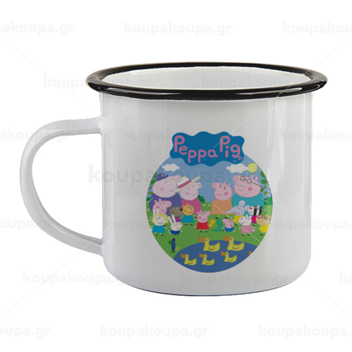 Peppa pig Family, Κούπα εμαγιέ με μαύρο χείλος 360ml