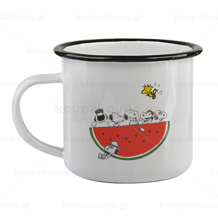 Snoopy summer, Κούπα εμαγιέ με μαύρο χείλος 360ml