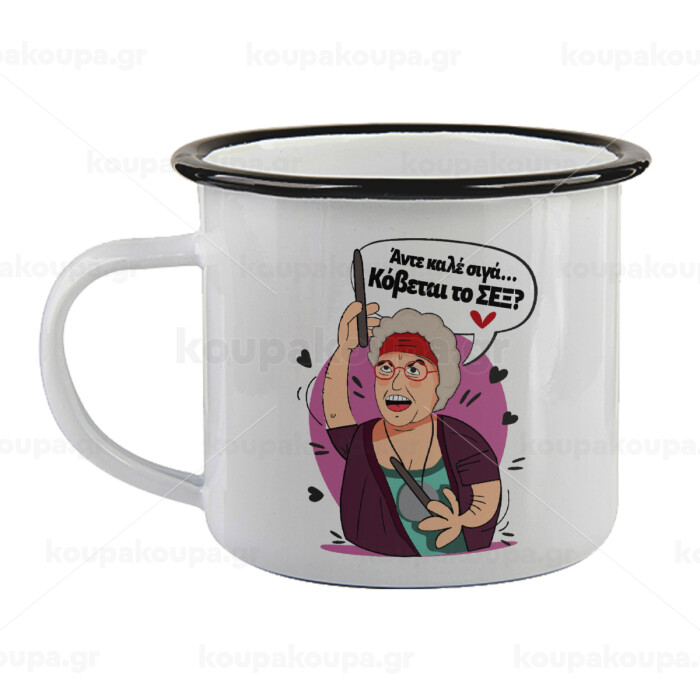 Αντε καλέ, σιγά, κόβεται το σέξ ;, Κούπα εμαγιέ με μαύρο χείλος 360ml
