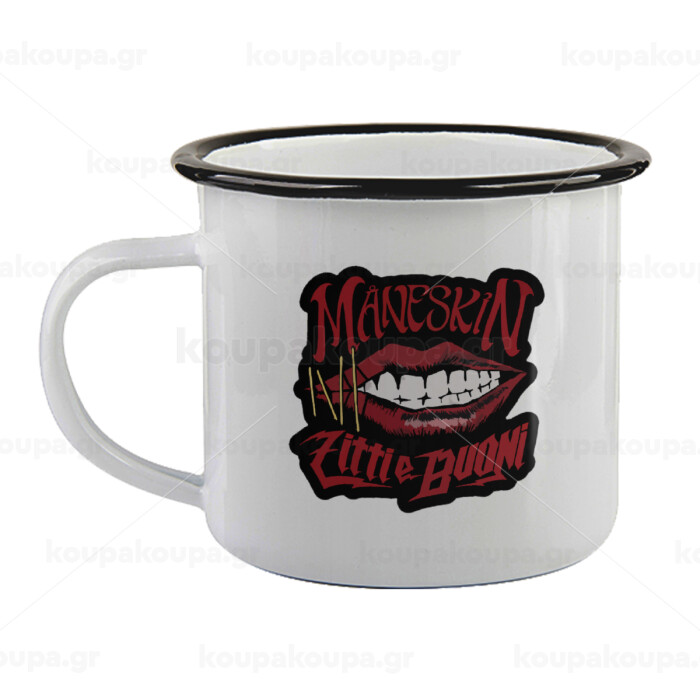 Maneskin lips, Κούπα εμαγιέ με μαύρο χείλος 360ml