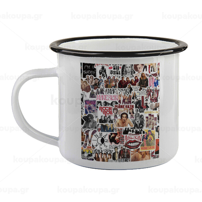 Maneskin stickers, Κούπα εμαγιέ με μαύρο χείλος 360ml