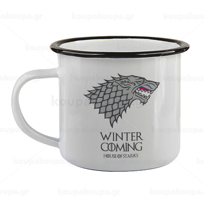 GOT House of Starks, winter coming, Κούπα εμαγιέ με μαύρο χείλος 360ml