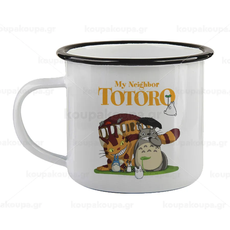 Totoro and Cat, Κούπα εμαγιέ με μαύρο χείλος 360ml