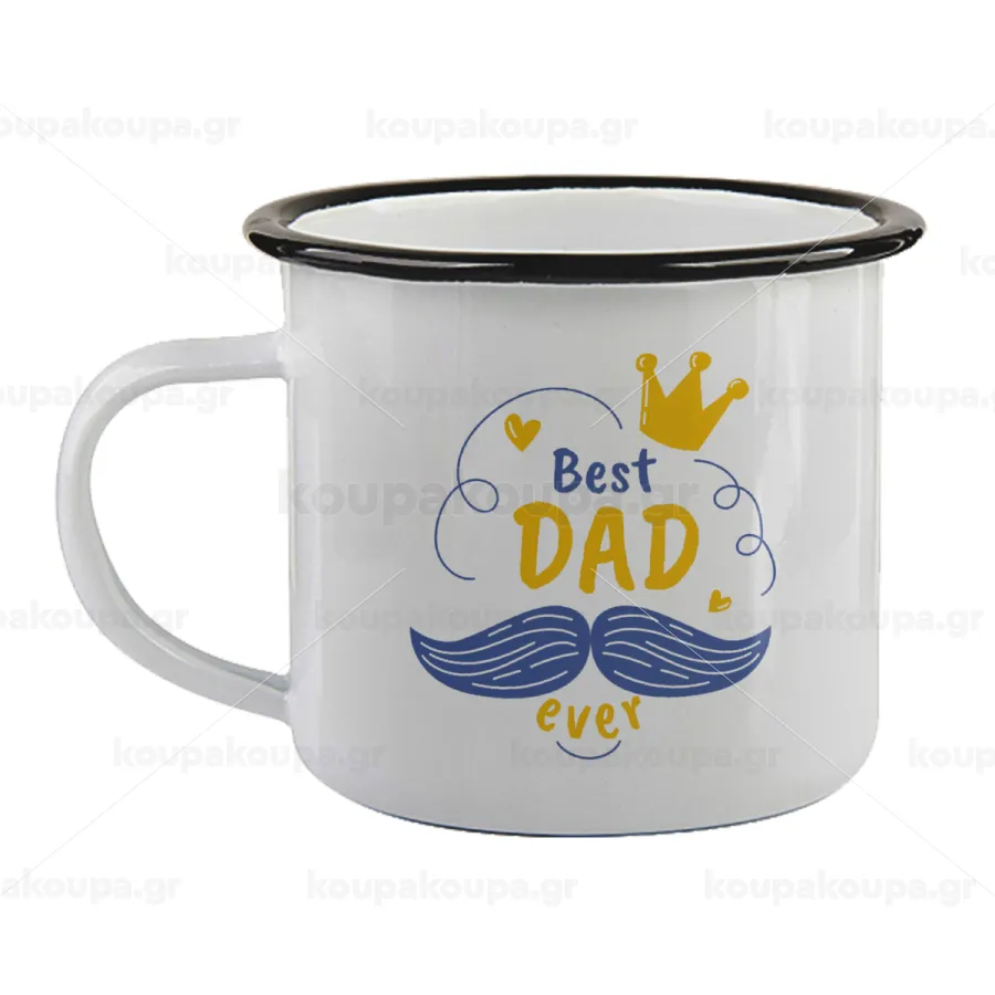 Best dad ever ο Βασιλιάς, Κούπα εμαγιέ με μαύρο χείλος 360ml