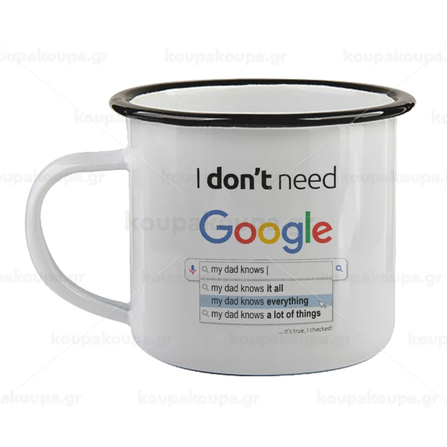I don't need Google my dad..., Κούπα εμαγιέ με μαύρο χείλος 360ml