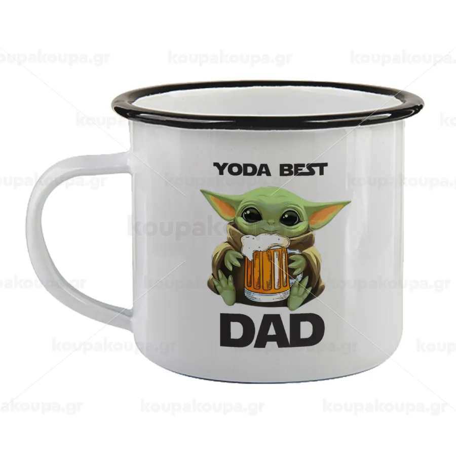 Yoda Best Dad, Κούπα εμαγιέ με μαύρο χείλος 360ml