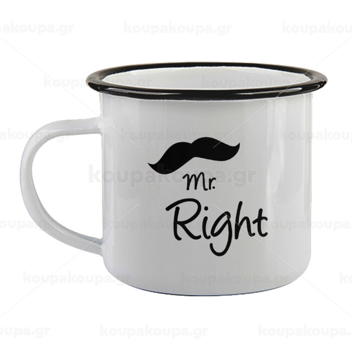 Mr right Mustache, Κούπα εμαγιέ με μαύρο χείλος 360ml