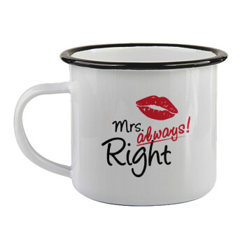 Mrs always right kiss, Κούπα εμαγιέ με μαύρο χείλος 360ml