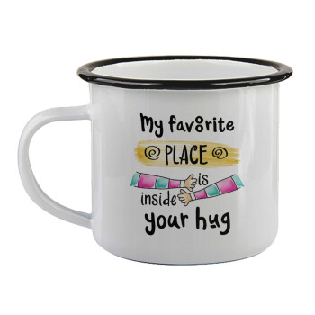 My favorite place is inside your HUG, Κούπα εμαγιέ με μαύρο χείλος 360ml