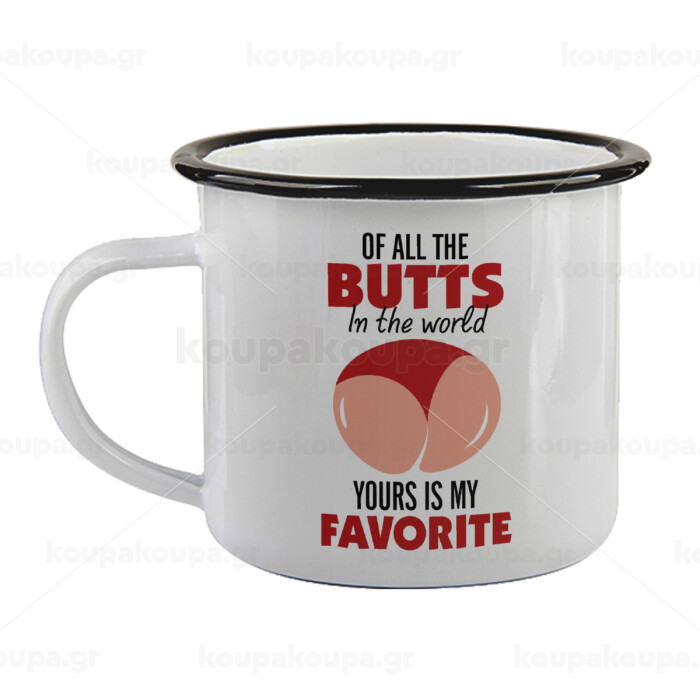 Of all the Butts in the world, your's is my favorite, Κούπα εμαγιέ με μαύρο χείλος 360ml