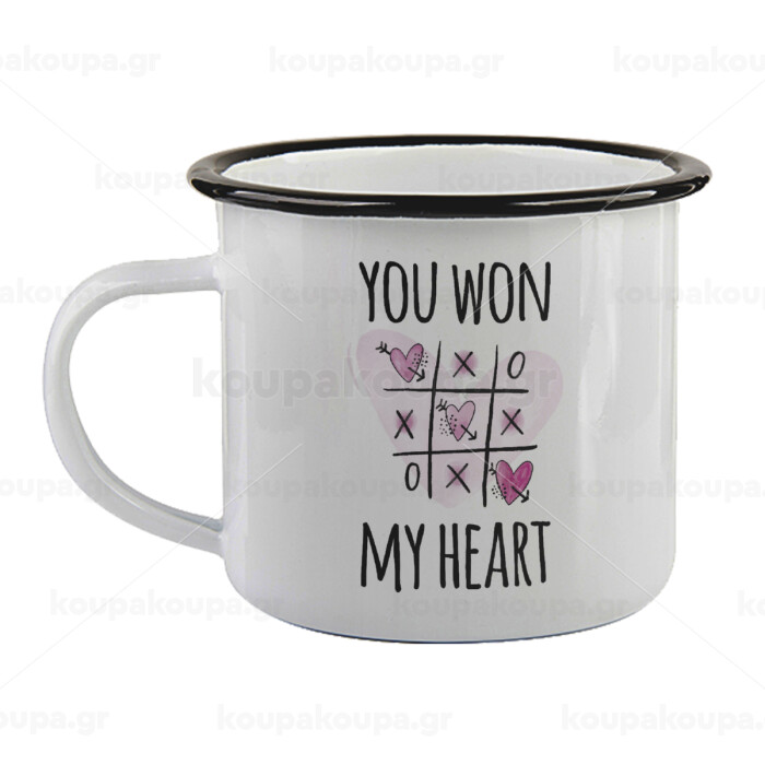 You won my heart, Κούπα εμαγιέ με μαύρο χείλος 360ml