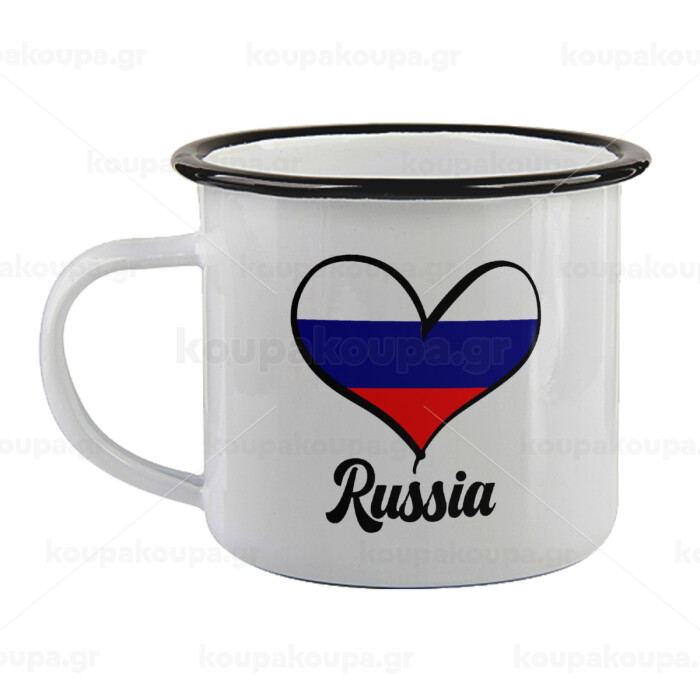 Russia flag, Κούπα εμαγιέ με μαύρο χείλος 360ml