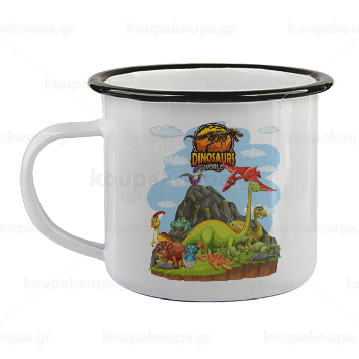 Dinosaur's world, Κούπα εμαγιέ με μαύρο χείλος 360ml