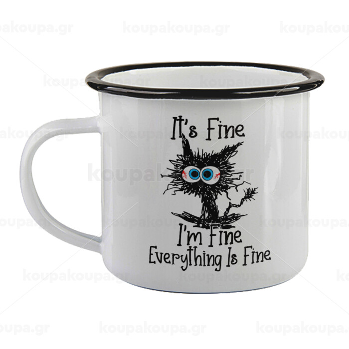 Cat, It's Fine I'm Fine Everything Is Fine, Κούπα εμαγιέ με μαύρο χείλος 360ml