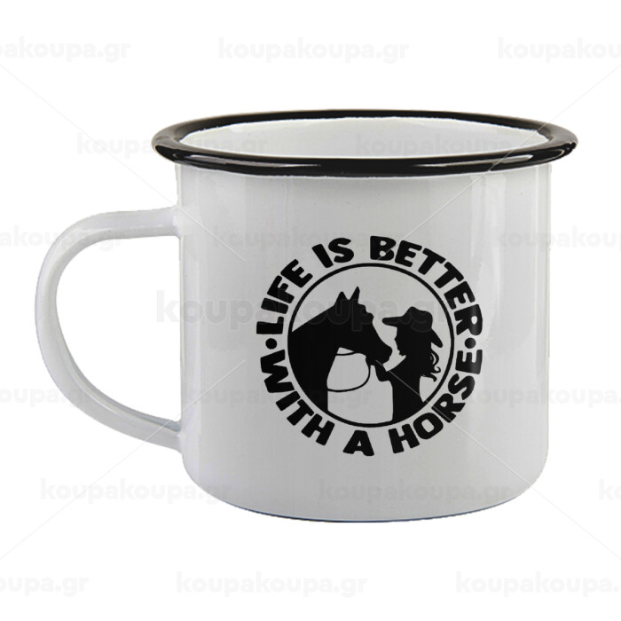 Life is Better with a Horse, Κούπα εμαγιέ με μαύρο χείλος 360ml
