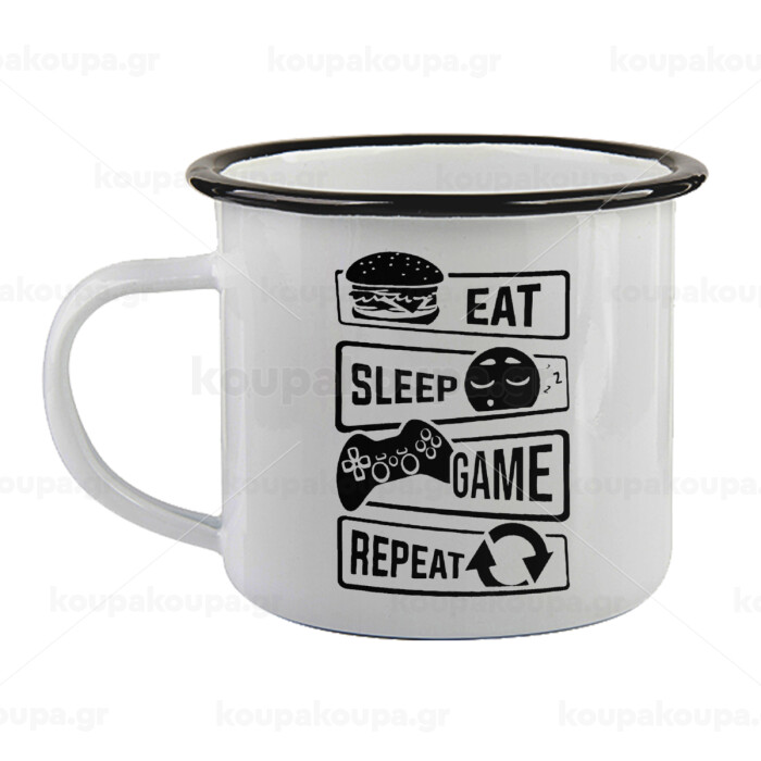 Eat Sleep Game Repeat, Κούπα εμαγιέ με μαύρο χείλος 360ml