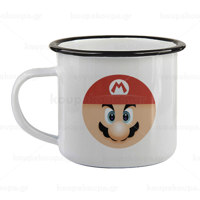 Super mario flat, Κούπα εμαγιέ με μαύρο χείλος 360ml