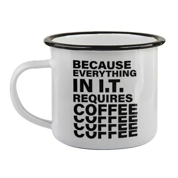 Because everything in I.T. requires coffee, Κούπα εμαγιέ με μαύρο χείλος 360ml