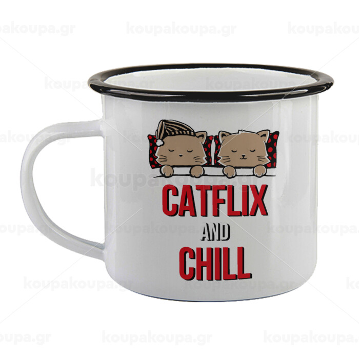 Catflix and Chill, Κούπα εμαγιέ με μαύρο χείλος 360ml