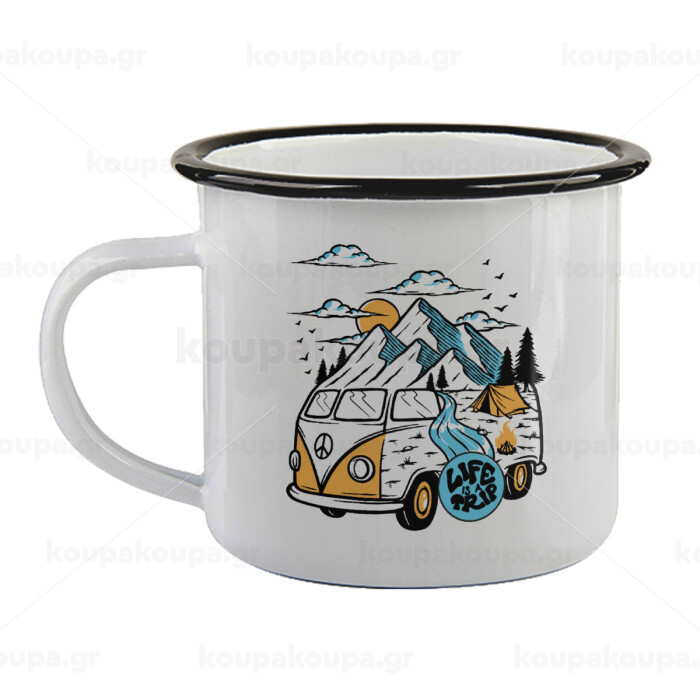 Life is a trip, Κούπα εμαγιέ με μαύρο χείλος 360ml
