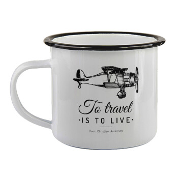 To travel is to live, Κούπα εμαγιέ με μαύρο χείλος 360ml
