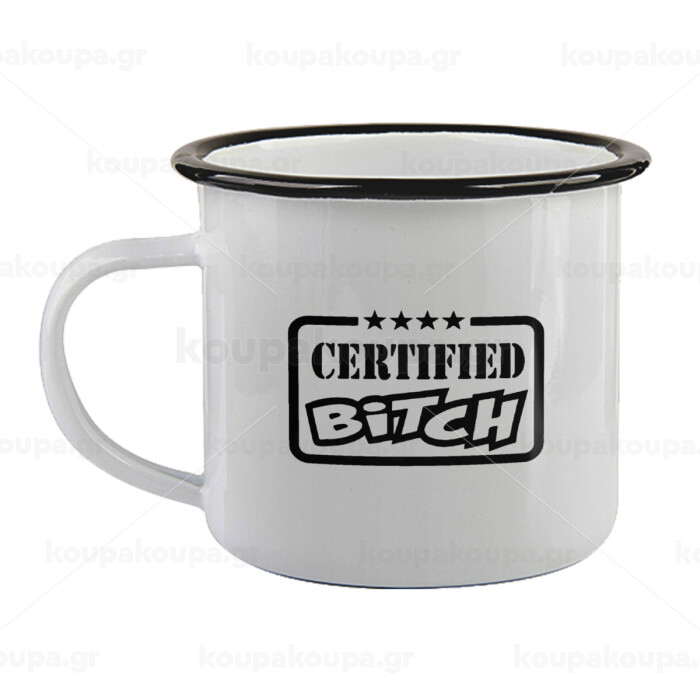 Certified Bitch, Κούπα εμαγιέ με μαύρο χείλος 360ml