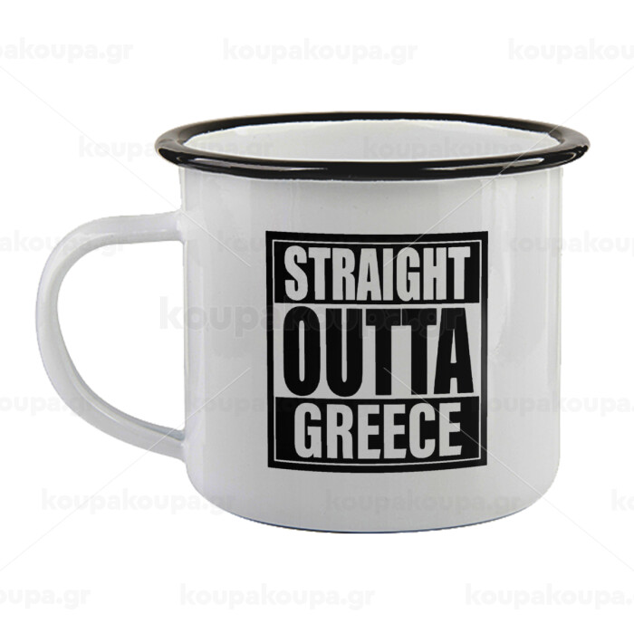 Straight Outta greece, Κούπα εμαγιέ με μαύρο χείλος 360ml