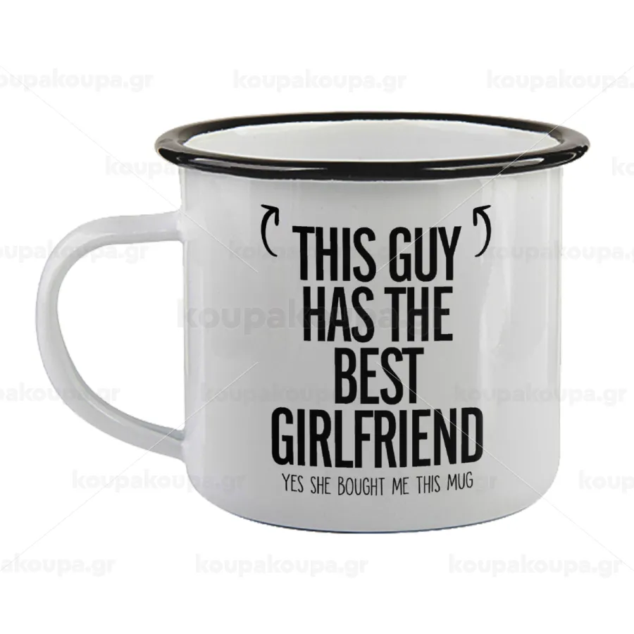 This guy has the best Girlfriend, Κούπα εμαγιέ με μαύρο χείλος 360ml