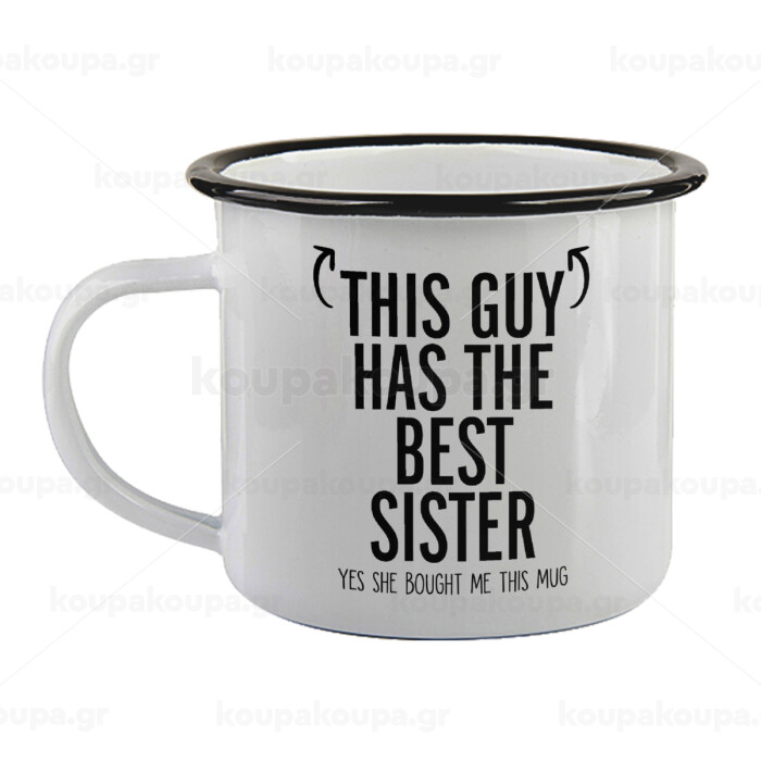 This guy has the best Sister, Κούπα εμαγιέ με μαύρο χείλος 360ml