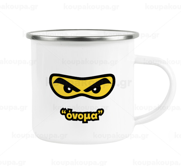 Ninja Eyes με όνομα, Metallic enamel cup white 360ml