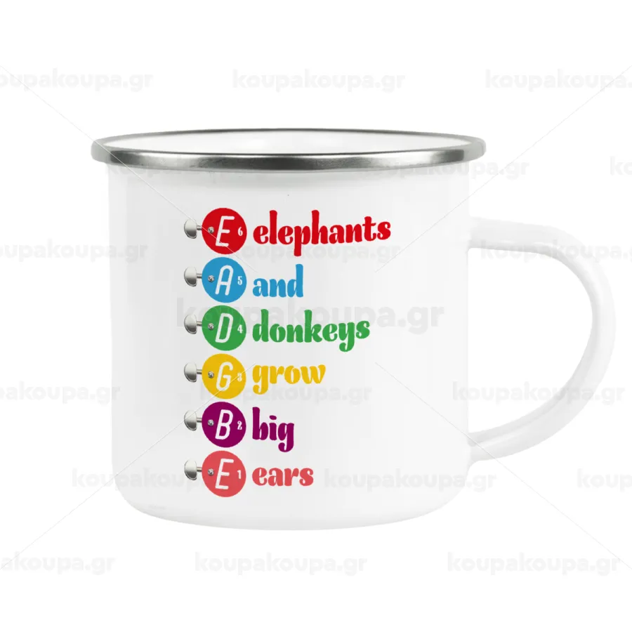 Elephants And Donkeys Grow Big Ears, Metallic enamel cup white 360ml