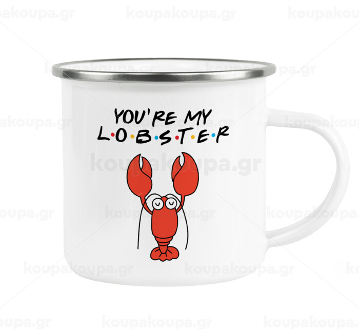 Friends you're my lobster, Metallic enamel cup white 360ml