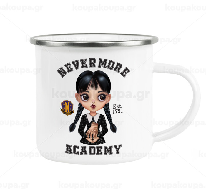 Wednesday Adams, nevermore, Metallic enamel cup white 360ml