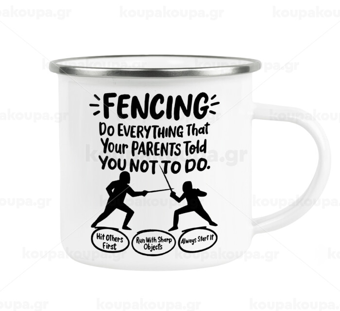 Fencing, do everything that your parents told you not to do., Metallic enamel cup white 360ml