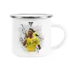Metallic enamel cup of high quality made of heavy-duty steel and thicker enamel for greater durability of excellent quality with a silver-colored rim. Suitable for hot and cold drinks. Hand wash recommended.