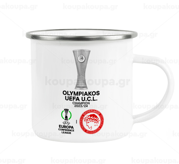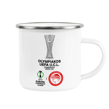 Olympiacos UEFA Europa Conference League Champion 2023/24, Metallic enamel cup white 360ml