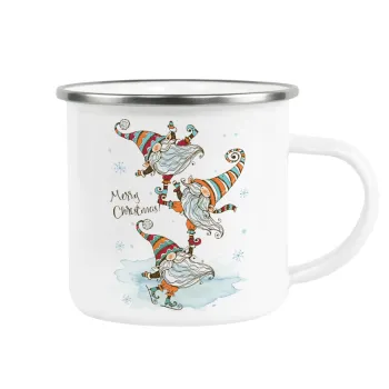 Christmas nordic gnomes, Metallic enamel cup white 360ml