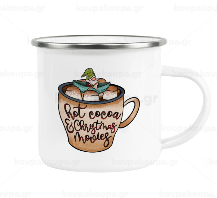 Hot Cocoa And Christmas Movies, Metallic enamel cup white 360ml