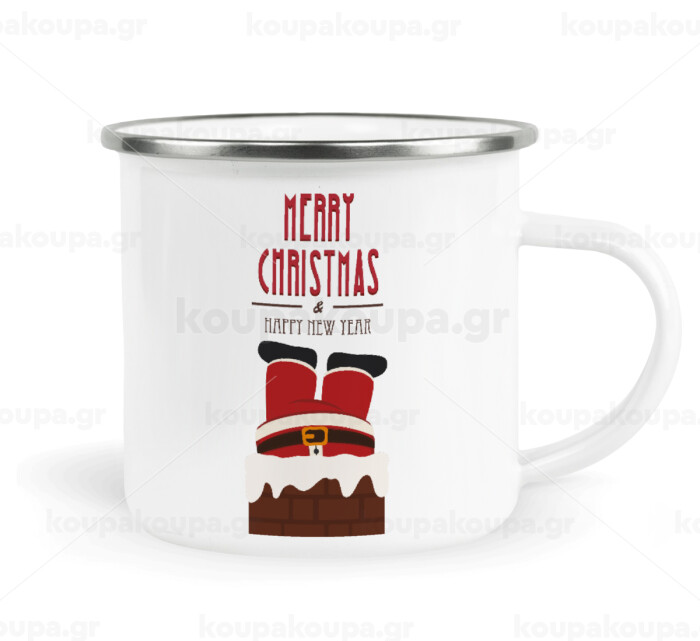 Merry christmas chimney, Metallic enamel cup white 360ml