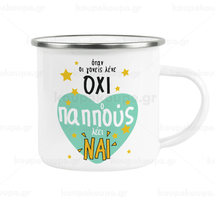 Όταν οι γονείς λένε ΟΧΙ, ο παππούς λέει ΝΑΙ, Metallic enamel cup white 360ml