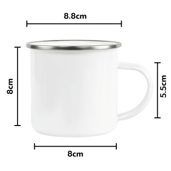 Metallic enamel cup of high quality made of heavy-duty steel and thicker enamel for greater durability of excellent quality with a silver-colored rim. Suitable for hot and cold drinks. Hand wash recommended.