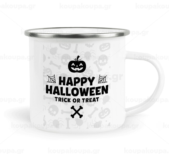 Happy Halloween pumpkin, Metallic enamel cup white 360ml