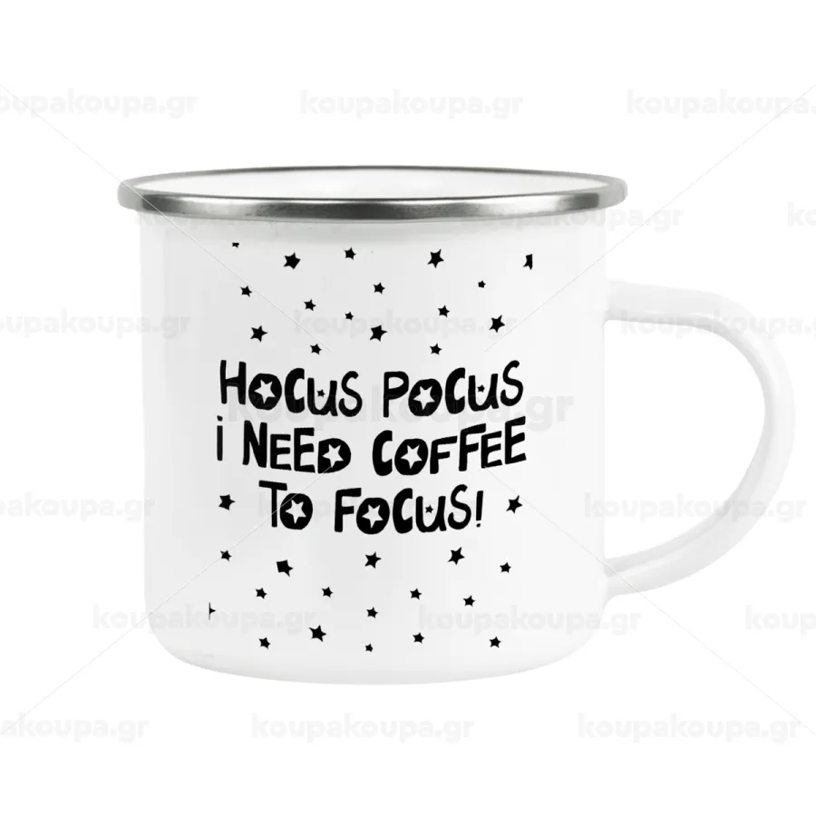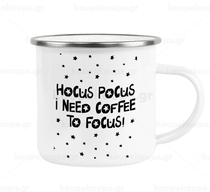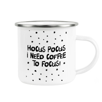 Hocus pocus i need coffee to focus - halloween, Metallic enamel cup white 360ml