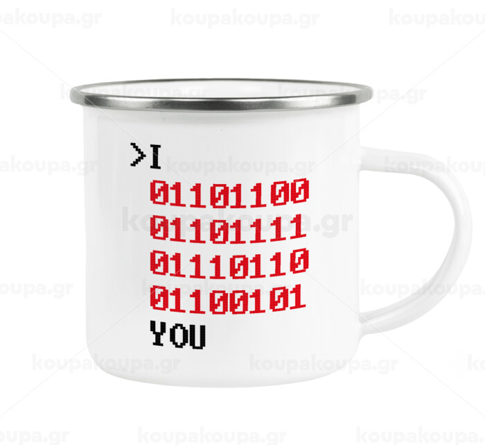 I .... YOU, binary secret MSG, Metallic enamel cup white 360ml