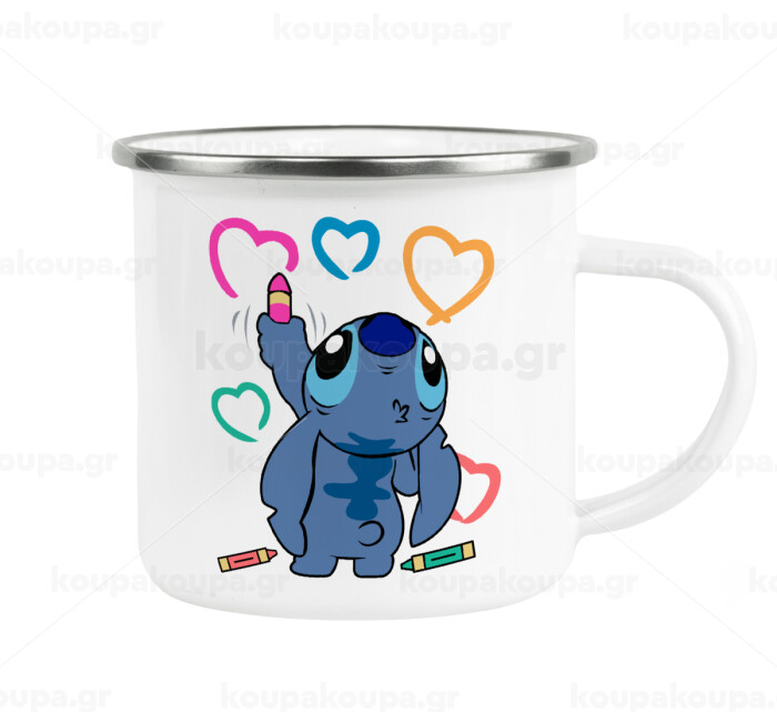 Lilo & Stitch painting, Metallic enamel cup white 360ml