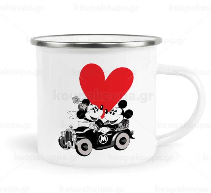 Mickey & Minnie love car, Metallic enamel cup white 360ml