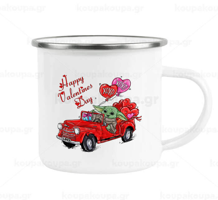Yoda, happy valentines day (xoxo), Metallic enamel cup white 360ml