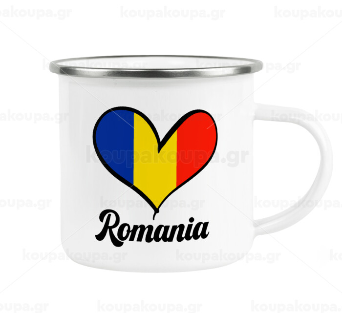 Romania flag, Metallic enamel cup white 360ml