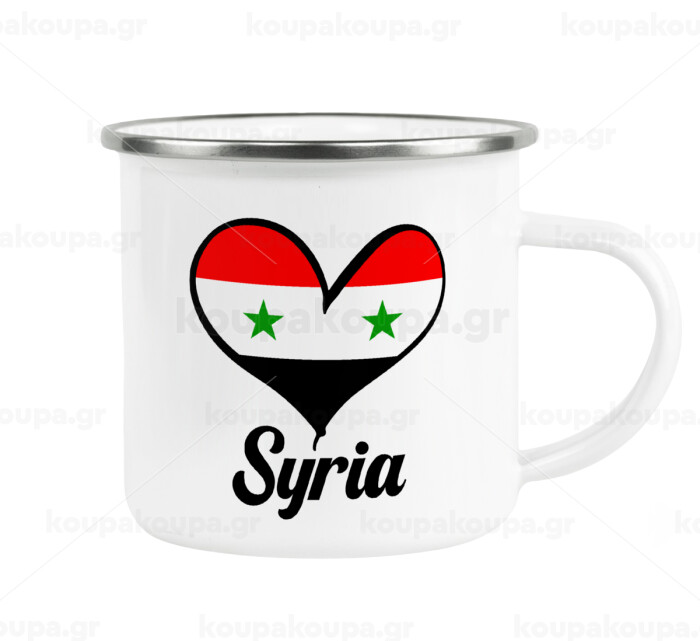 Syria flag, Metallic enamel cup white 360ml